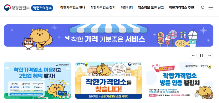 - 조회 방법 : 행정안전부 착한가격업소 홈페이지, 네이버지도·카카오맵·티맵에서 ‘착한가격업소’ 검색.